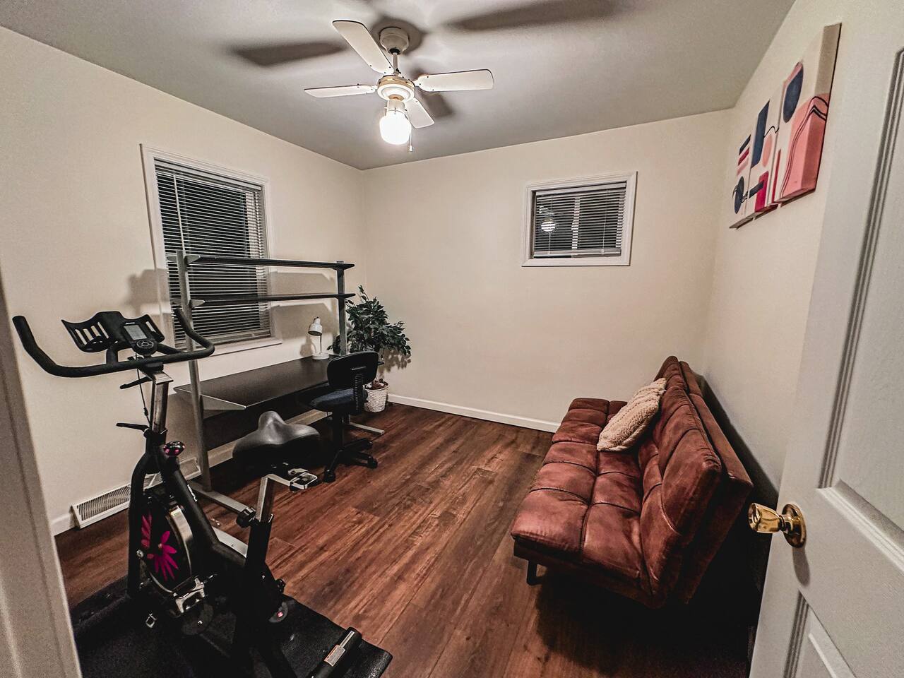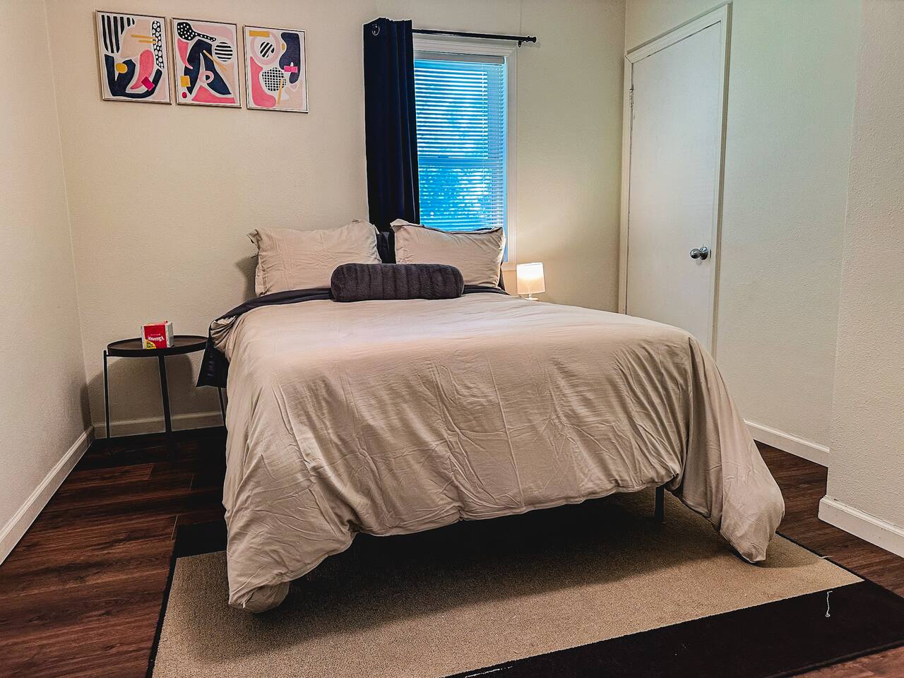Welcome to our spacious 1000 sq. ft. one level home in Grand Forks! This inviting space features two bedrooms: one with a king bed and the other with a queen. There's also a dedicated office, perfect for remote work. The bathroom includes a spacious walk-in shower, and you'll have the convenience of an in-unit washer and dryer. The fully stocked kitchen is ready for all your cooking needs. Enjoy access to the fenced-in backyard for some outdoor relaxation next to the fire pit